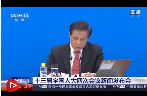 3月4日晚,十三届全国人大四次会议在人民大会堂举行首场新闻发布会,大会发言人张业遂介绍了大会议程和相关安排,并通过视频采访方式回答了中外记者提问。